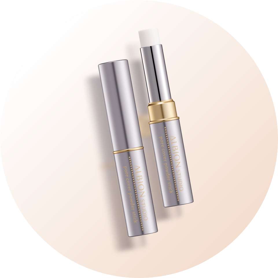 スティックを約1~3mm繰り出し、毛穴やテカリ・化粧くずれが気になる部分に垂直にあて、