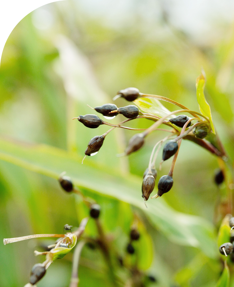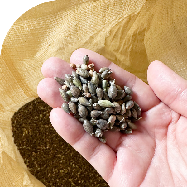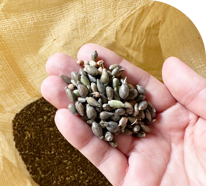 ハトムギは根が土の中で広く張り、繊維質が少ないため、種を収穫した後土に混ぜ込むとえん麦と同等程度の緑肥効果を発揮します。ハトムギを栽培することで水もち、水はけが良く、菌環境のよい土となり、植物の育ちによい連鎖が生まれるのです。