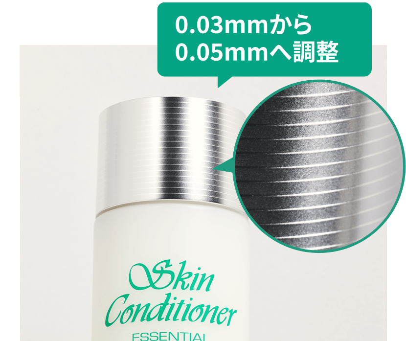 また、スリムになったキャップが開けにくくならないように、キャップに刻まれた線による段差を寸法0.02㎜単位で調整。スムーズに開閉できる微妙な差を繰り返しテストしました。