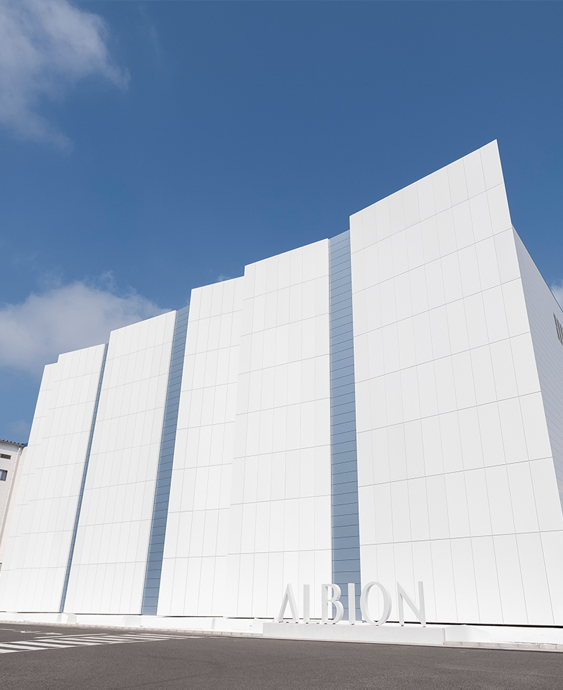 アルビオンの製品は、埼玉県にある熊谷工場でつくられています。お客様に安心してお使いいただける化粧品を生み出すため、最新設備と万全の検査体制を整え、大量生産する第一生産棟と、少量生産の第二生産棟という、異なる2つの生産体制で効率的に生産を行っています。スキコンが生産されているのは第一生産棟です。