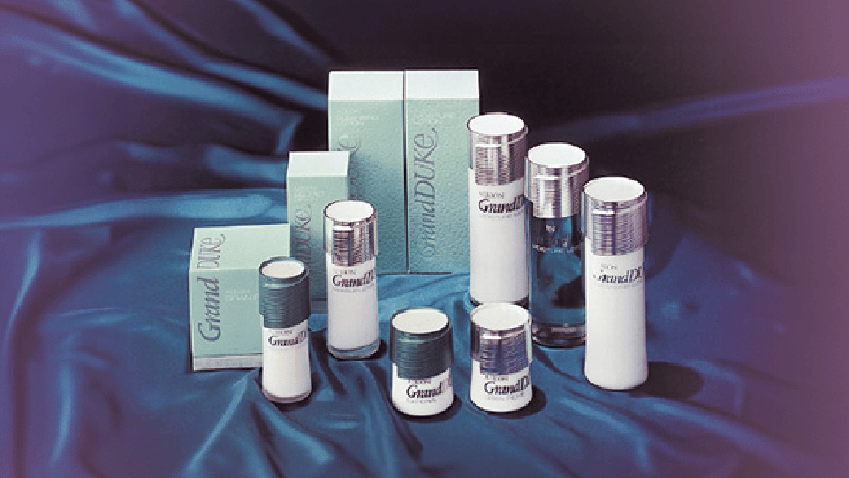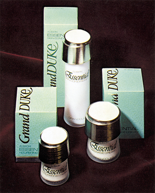 1972年にアルビオンは超高級スキンケア“グランデューク”シリーズを発表し、その2年後に同シリーズから、さらにアクティブな効果をもつ“グランデューク エッセンシャル”ライン3品を発売。スキコンはその中の1品として誕生しました。ちなみに、製品名の『エッセンシャル』がつくのは、この時のなごりです。