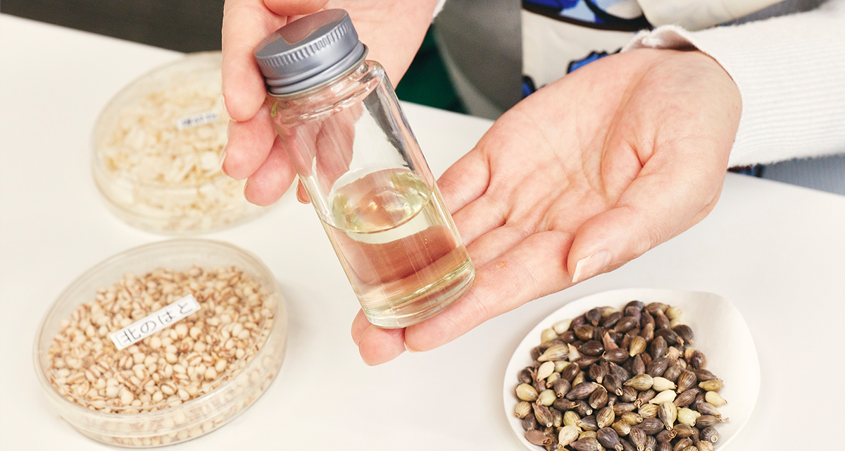 丸島 「薬用スキンコンディショナー エッセンシャル Nには、エキスとオイルの両方を配合しているため、ボトル1本につき使っているハトムギの量も、今までと比べるとすごく増えているんです」