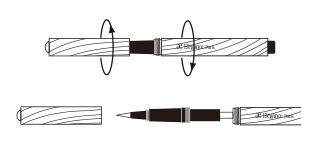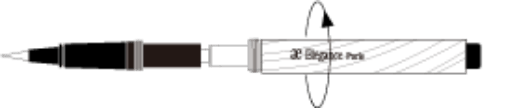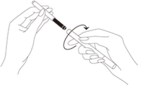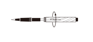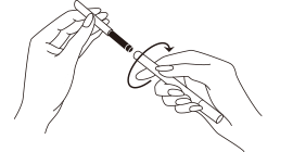 図のように、カートリッジをアイライナー ホルダー(別売)先端部に差しこみ、ホルダーを右に最後まで回し、セットしてからお使いください。