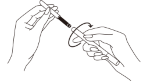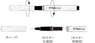 図のように、カートリッジをジェルリップライナー ホルダー(別売)先端部に差しこみ、ホルダーを右に最後まで回し、セットしてからお使いください。