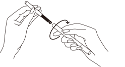 カートリッジをセットしたホルダー先端部に、ホルダー容器部をとりつけます。(ゆるみのないよう、最後までしっかりとねじ込んでください。)
